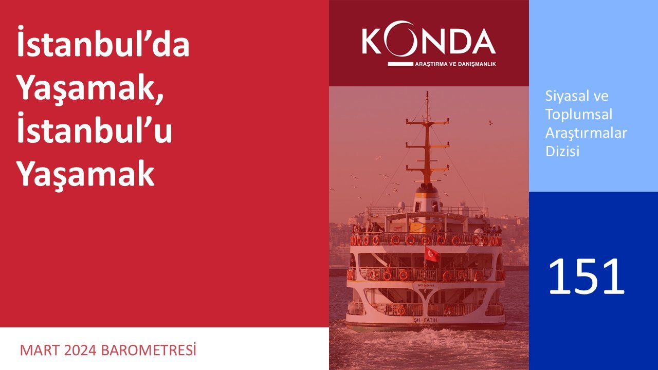 KONDA Araştırma 2010 yılından beri her ay düzenli olarak BAROMETRE adı altında siyasal ve toplumsal araştırmalar serisi gerçekleştirmektedir. Her BAROMETRE araştırmasında düzenli olarak sorduğumuz demografik özellikler, siyasi tercihler ve ekonomik beklentilere dair standart soruların yanı sıra o sırada kamuoyu gündeminde yer alan konulara toplumun bakışı ve farklı alanlarda algı ve beklentilerini ölçmek amacıyla sorular da sorulmaktadır. Barometre araştırma serisinin 151'incisi olan rapora esas olan araştırma 2-3 Mart 2024 tarihlerinde İstanbul’un 36 ilçesine bağlı 135 mahallesinde 2489 kişiyle hanelerinde yüzyüze görüşülerek yapılmıştır.