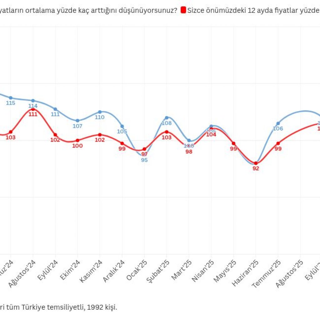 Aralık ayında önümüzdeki 12 aya ilişkin enflasyon beklentisi genel olarak önceki ayla aynı s...