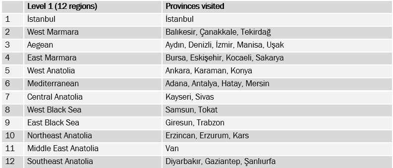 Araştırma kapsamında, 33 ilin merkez dahil 111 ilçesine bağlı 188 mahalle ve köyünde 3307 kişiyle hanelerinde yüz yüze görüşülmüştür. Her bir mahallede gerçekleştirilen 18 anket için yaş ve cinsiyet kotası uygulanmıştır.