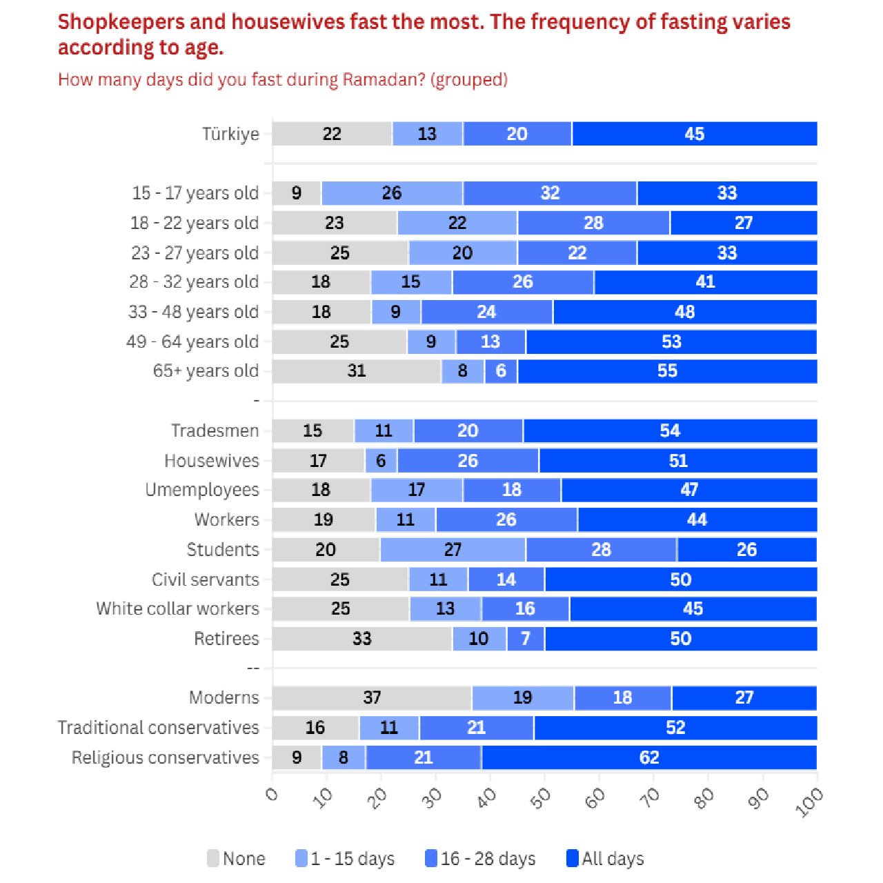 The section examines the fasting practices of those interviewed for the April '25 Barometer survey during Ramadan: