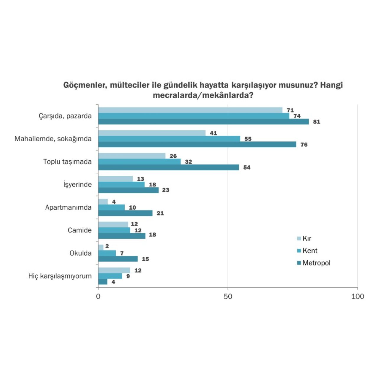 Bölümde, bireylerin göçmenler ve Suriyeli sığınmacılarla gündelik hayattaki karşılaşma sıklığı ve deneyimleri, bu konudaki çözüm beklentileri ile Gezi Parkı olaylarına yönelik tutumları ele alınıyor: