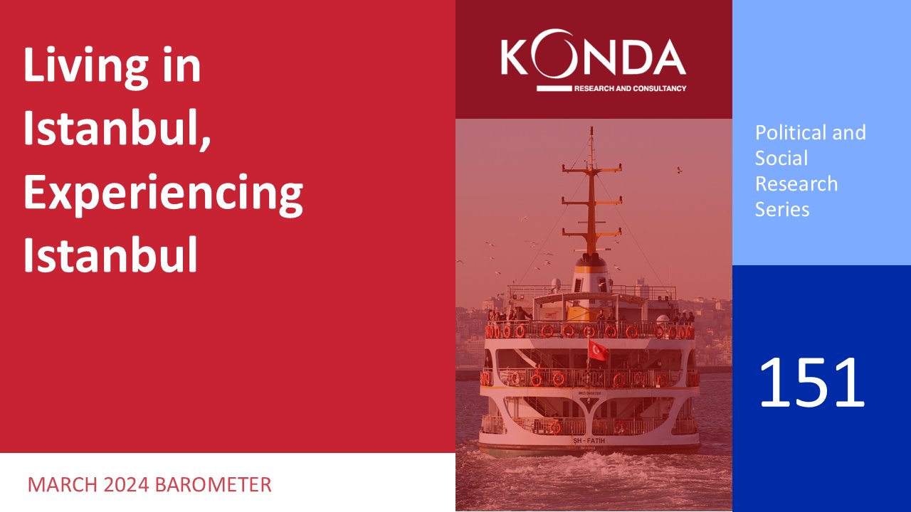 KONDA Research has been conducting a series of political and social surveys called BAROMETER every month since 2010. In addition to the standard questions on demographic characteristics, political preferences and economic expectations that we regularly ask in each BAROMETER survey, we also ask questions about the public's perspective on the issues that are on the public agenda at the time and to measure their perceptions and expectations in different areas. The research, which is the 151st in the Barometer research series, was conducted on March 2-3, 2024 in 135 neighborhoods of 36 districts of Istanbul by face-to-face interviews with 2489 people in their households.