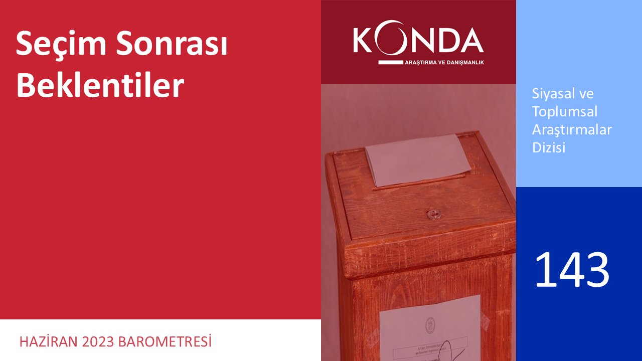 KONDA Araştırma 2010 yılından beri her ay düzenli olarak BAROMETRE adı altında siyasal ve toplumsal araştırmalar serisi gerçekleştirmektedir. Her BAROMETRE araştırmasında düzenli olarak sorduğumuz demografik özellikler, siyasi tercihler ve ekonomik beklentilere dair standart soruların yanı sıra o sırada kamuoyu gündeminde yer alan konulara toplumun bakışı ve farklı alanlarda algı ve beklentilerini ölçmek amacıyla sorular da sorulmaktadır. Barometre araştırma serisinin 143'üncüsü olan rapora esas olan araştırma 10-11 Haziran 2023 tarihlerinde 33 ilin merkez dahil 115 ilçesine bağlı 177 mahalle ve köyünde 3317 kişiyle hanelerinde yüz yüze görüşülerek yapılmıştır.